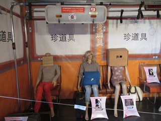 E lo spazio dedicato al Chindogu: tanti stand, in fila, nei quali gli oggetti più improbabili appaiono davanti ai nostri occhi, stupiscono, sembrano persino utili o geniali e…forse lo sono.