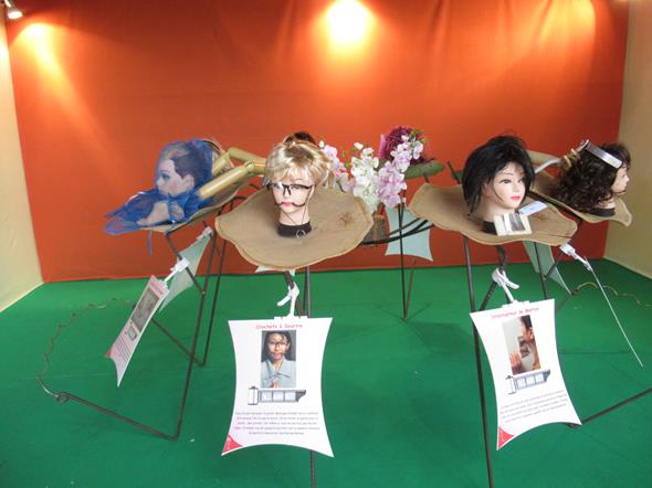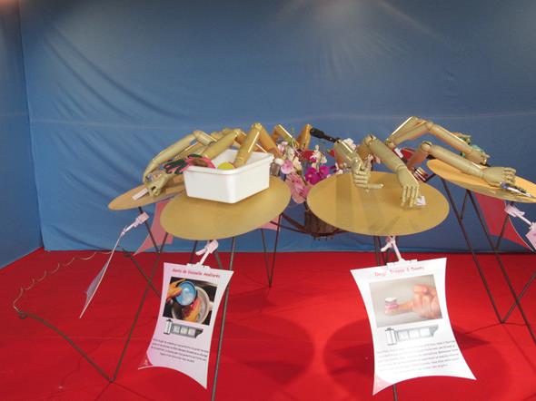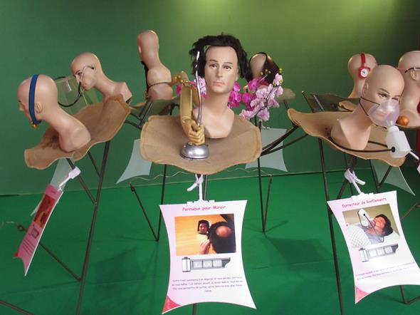 Il telefono con il manubrio, il casco che distribuisce fazzoletti di carta, l'ombrello per le scarpe,il casco da moto per signore con le trecce... Più di 100 oggetti sono presentati alla Fiera di Nizza, divertono e fanno anche pensare.