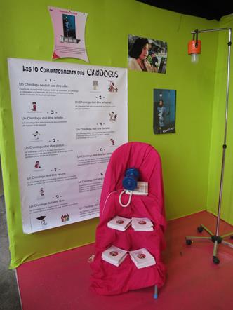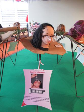 Grande fornitore di consigli e altre invenzioni per facilitare la vita quotidiana, il francese Jean-Christophe Lecocq, che ha allestito la mostra per la Fiera di Nizza, non poteva non essere sedotto dall'arte di Chindogu, una disciplina che trasforma gli oggetti più banali per rispondere capricciosamente e poeticamente ai piccoli problemi della vita di tutti i giorni.