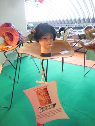 E lo spazio dedicato al Chindogu: tanti stand, in fila, nei quali gli oggetti più improbabili appaiono davanti ai nostri occhi, stupiscono, sembrano persino utili o geniali e…forse lo sono.