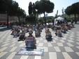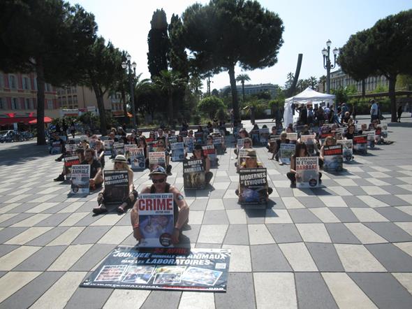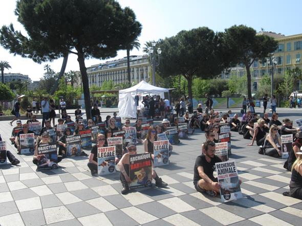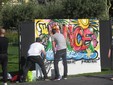 Con gli artisti di strada intenti a colorare i murales e un folto gruppo di persone a manifestare contro la vivisezione.