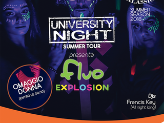 Il party universitario simbolo di Torino! Anche quest'anno salgono in cattedra a Le Vele Alassio i ragazzi di University Night! ...E dopo la "Festa dei Colori" ad Alassio... Fluo Explosion alle Vele!!! L'ingresso è in omaggio per le donne e ridotto per gli uomini entro le ore 00:30! Vi aspettiamo!