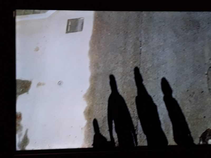 E sulle pareti appaiono sfolgoranti le campagne e il mare dell’Emilia, della Puglia e della Basilicata, le tre regioni protagoniste del suo pellegrinaggio (“non dovete essere dei turisti, ma dei pellegrini: è il pellegrino che capisce il mondo camminando a piedi, non il turista): la presenza umana non compare se non nel rimando al fatto che si tratta per lo più di vasti territori coltivati. E dal paesaggio naturale si passa alle splendide foto del paesaggio urbano: “il paesaggio urbano è nato in America, non poteva nascere a Firenze”: ed ecco strade, muri, angoli di NewYork e la famosa Route 66, percorsa insieme allo scrittore Massimo Manfredi.