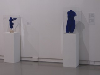 Notevoli anche alcune opere che derivano da particolari performance dell’artista che, dopo aver verniciato delle modelle col “suo” blu le ha fatte camminare o rotolare sulla tela bianca o, comunque, monocromatica.