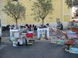 Fiori, frutta, verdura e tanti quadri e il tempo passa, mentre il sole riesce a vincere alcune barriere ed a illuminare a pieno la piazza.