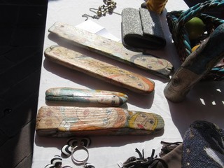 Opere assolutamente ecologiche, che nascono colorando e disegnando bastoncini in legno che il mare deposita sulla riva o pietre e sassi trasportati dai fiumi a valle.