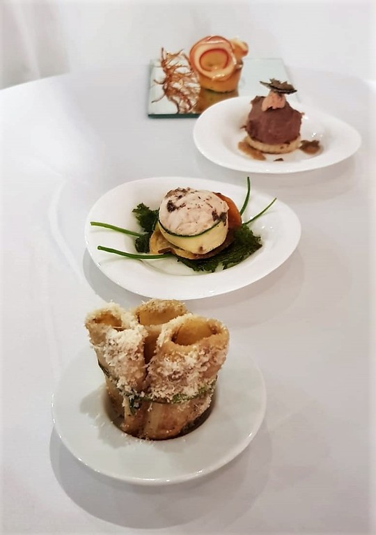 Vallecrosia e i suoi ristoranti e chef si sono confermati ancora una volta come una realtà di grande eccellenza gastronomica di fronte ad un pubblico attento e composto da veri intenditori e gourmet. La galleria fotografica documenta la spettacolare presentazione dei piatti abbinata ad un servizio particolarmente curato ed attento dello staff della Balena Bianca, il ristorante di Paola Chiolini. Ai piatti creati da Rossini come il tournedos e i maccheroni, si sono aggiunte preparazioni ispirate al compositore e piatti tipici del ponente ligure come i barbagiuai e il brandacujun. Il tutto impreziosito dalla presenza generosa di tartufo bianco e nero, che Rossini aveva definito “il Mozart dei funghi”, e che amava gustare tagliato a pezzettini nell’insalata di radicchio oppure nel ripieno di foie gras e midollo di bue con cui farciva ad uno a uno con una siringa d’avorio i suoi maccheroni. Non solo uno straordinario musicista Rossini, ma anche un grande personaggio a livello culinario, il cui nome è legato a doppio filo con l’enogastronomia.