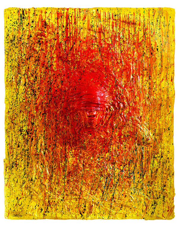 Presente anche il quadro scultura intitolato “ReArt”, già esposto nel 2017 al museo di arte contemporanea di Milano “la Fabbrica del Vapore”, nonchè due pezzi unici appartenenti alla famosa serie de “La Bocca dell'Etna”, le famose sculture in silicone, acrilico e acciaio; tra 18 pezzi esposti presente anche la scultura intitolata “Il Cuore della Terra”, realizzata con polvere di marmo e frammenti di meteorite, il dipinto olio su tela “Gospel” già presentato alla biennale di Montecarlo nel 2016, due differenti versioni acrilico e silicone de “Il Taglio”, “l'Arlecchino nella Terra dei Giganti”, “Fenicotteri allo Specchio”, insomma..... tutte opere d'arte uniche nel loro genere, come uniche le tecniche e le ispirazioni dell'artista.