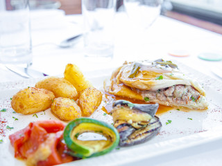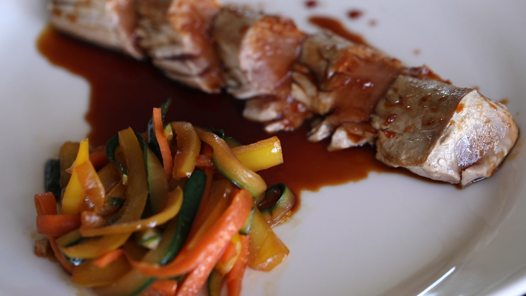 Accompagnato da un wok di verdure e patate cotte al vapore