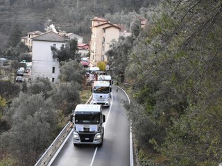 Circa trenta i mezzi che questa mattina hanno aderito alla manifestazione per mettersi in marcia a velocità ridotta da Trucco verso Fanghetto, giro che ripeteranno per ben due volte. Centinaia le auto che sono rimaste in coda e hanno subito i disagi della protesta in atto