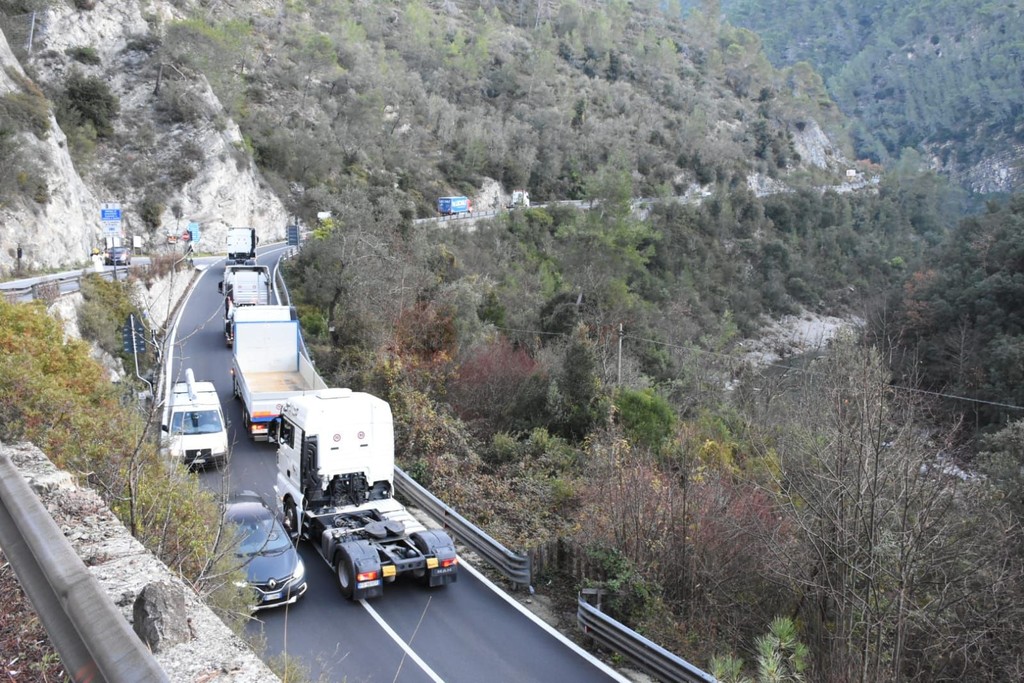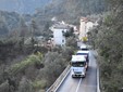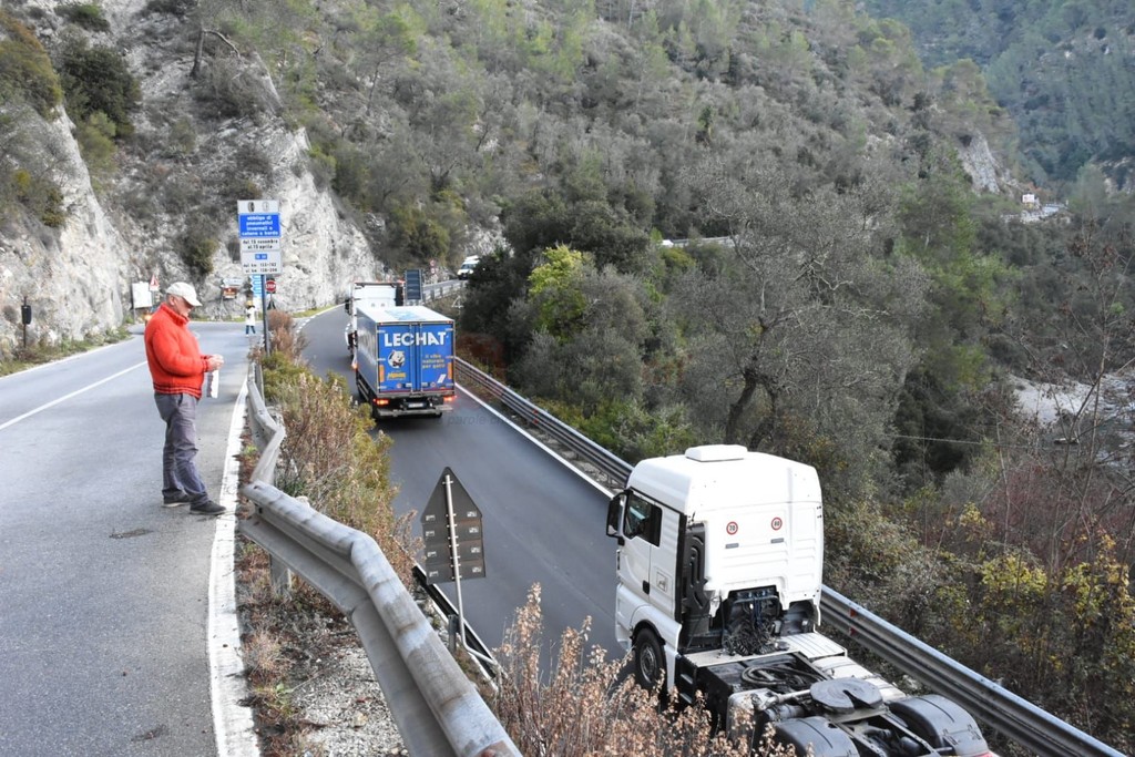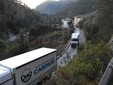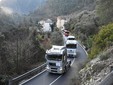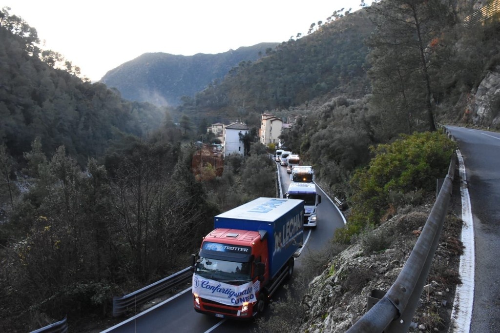 Traffico paralizzato in Val Roya per la protesta in atto che vede i tir procedere a passo di lumaca alla volta del confine di Fanghetto. I mezzi sono partiti questa mattina intorno alle 6.30 da Trucco per protestare contro quello che gli autotrasportatori italiani definiscono il ‘divieto della vergogna’.