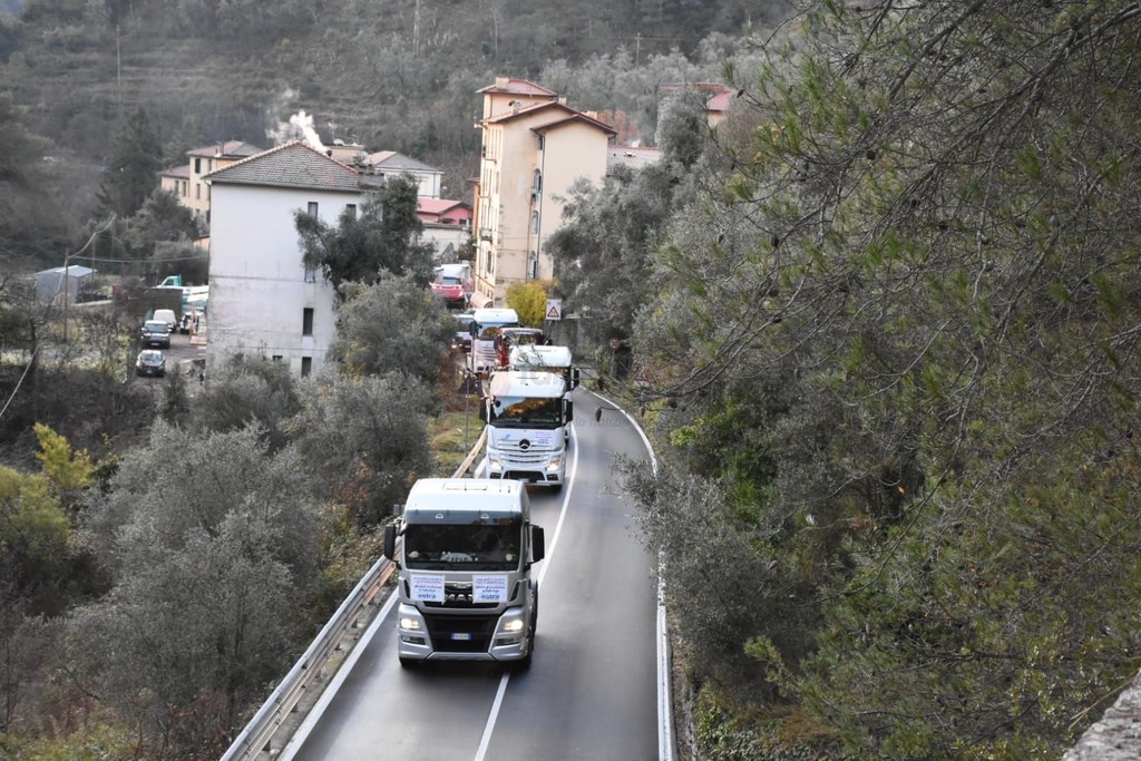 Circa trenta i mezzi che questa mattina hanno aderito alla manifestazione per mettersi in marcia a velocità ridotta da Trucco verso Fanghetto, giro che ripeteranno per ben due volte. Centinaia le auto che sono rimaste in coda e hanno subito i disagi della protesta in atto