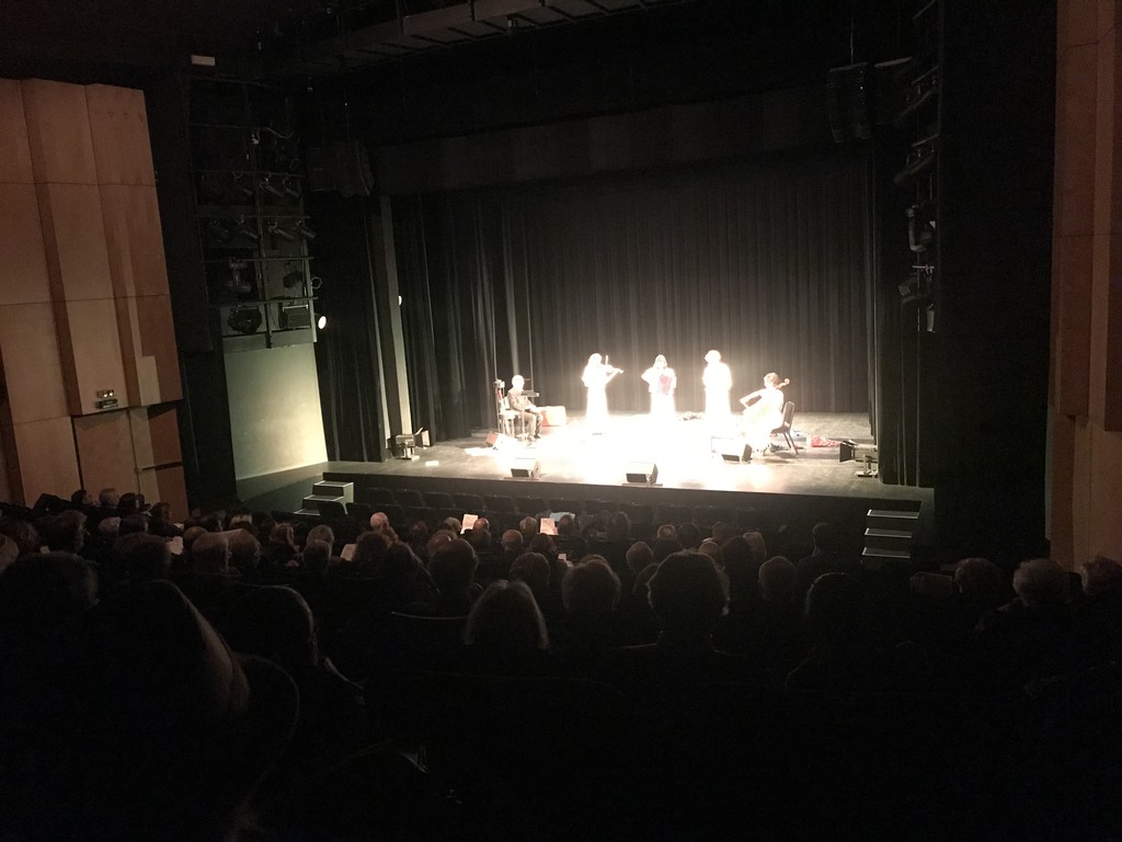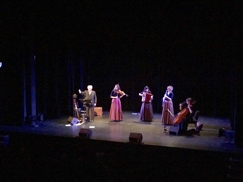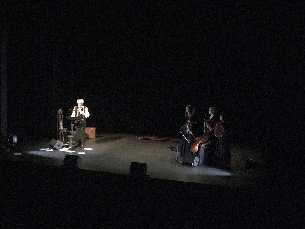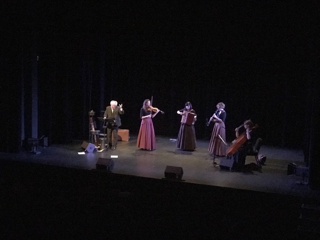 Eugenio Allegri, maestro indiscusso di teatro, accompagnato dallo straordinario quartetto, Les Nuages Ensemble, composto da Annarita Crescente, Lucia Marino, Alessandra Osella, Lucia Sacerdoni, ha saputo creare sul palco del Teatro des Variétés scenografie e immagini che ci hanno condotto in luoghi e spazi davvero esotici.