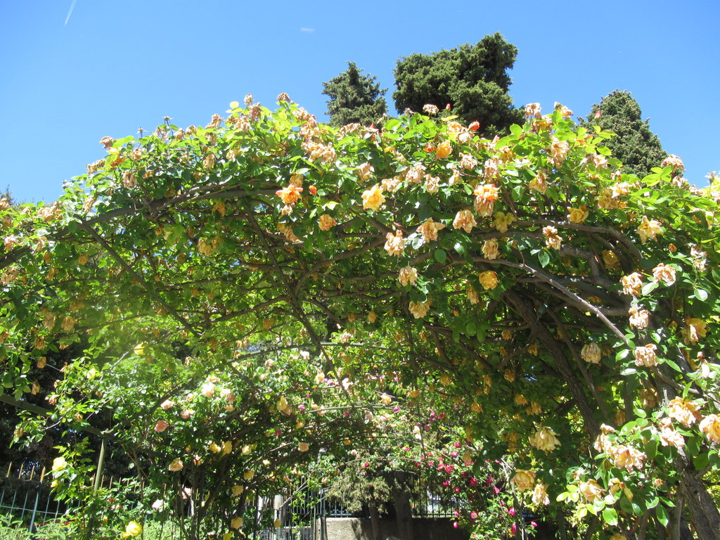 Le persone giungono, guardano il panorama, ammirano le rose, si siedono: un momento di relax mentre, in basso, si scorge la città con la sua vita caotica. Ma qui, in alto, è silenzio: l’atmosfera giusta per il roseto di un convento che fu benedettino fino al 1546 e poi francescano.