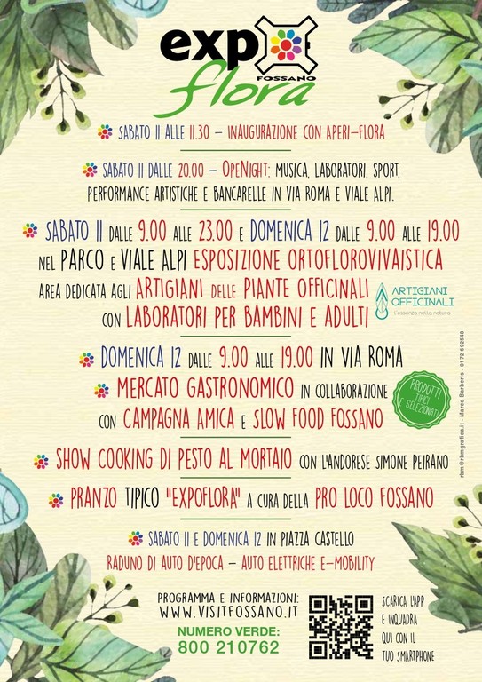 - Dalle ore 9.00 alle 23.00, Esposizione ortoflorovivaistica nel parco cittadino e lungo viale Alpi, un'area dedicata agli artigiani delle piante officinali con laboratori per bambini e adulti.