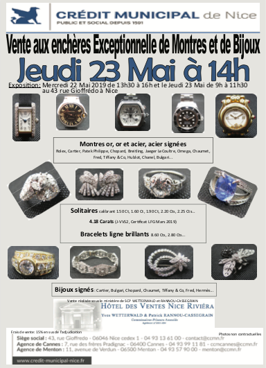 Qual è la funzione del Crédit Municipal? In poche parole è tipicamente sociale: non vi è alcun interesse alla speculazione, ma esclusivamente alle finalità che si esplicitano in una serie di attività complementari tra loro. Gioielli, oro, preziosi e quadri vengono lasciati in deposito dai proprietari e vengono “stimati” da tecnici del Crédit che ne stabiliscono il valore. Per avere un'idea di come funziona il Crédit Municipal, potrete seguire domani, 23 maggio alle ore 14.00, l'asta eccezionale e l'esposizione che ha luogo già da oggi. Fanno parte di questa vendita particolarissimi gioielli