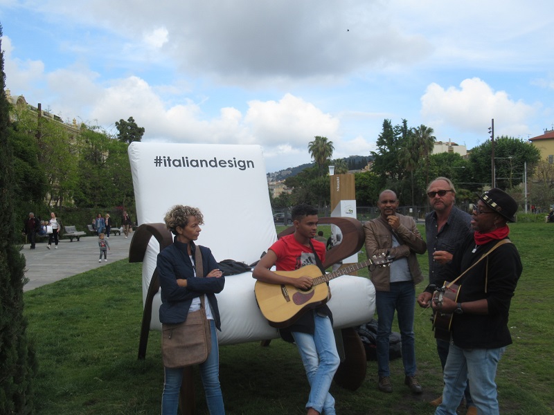 Una grande poltrona, nel bel mezzo della Promenade du Paillon, con una scritta che è tutta un programma “#italiandesign”, ha attirato l’attenzione delle tante persone che affollano il polmone verde del centro di Nizza proprio dopo le fontane, vera attrazione e gioco per tanti bambini e non solo.