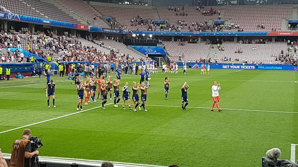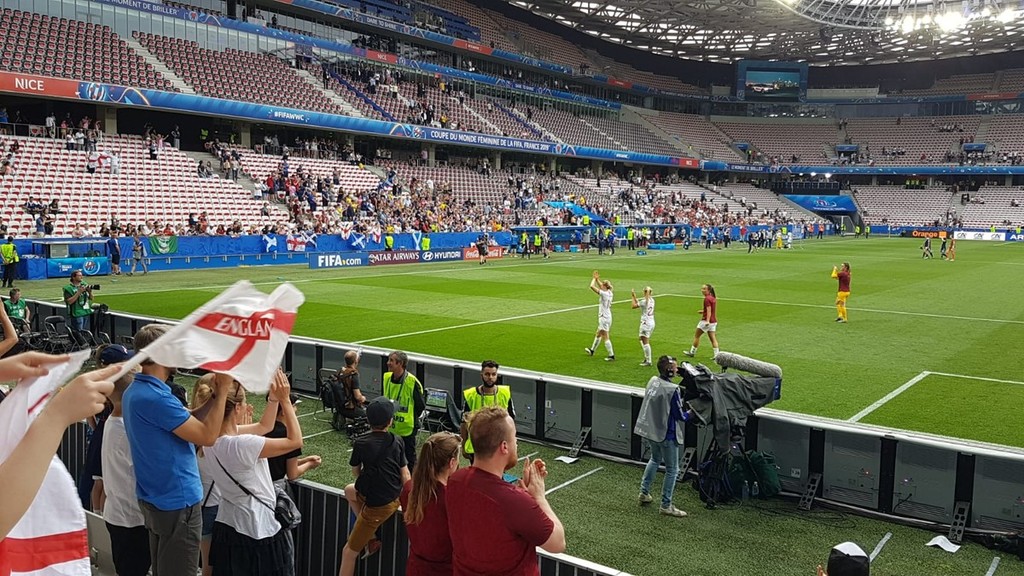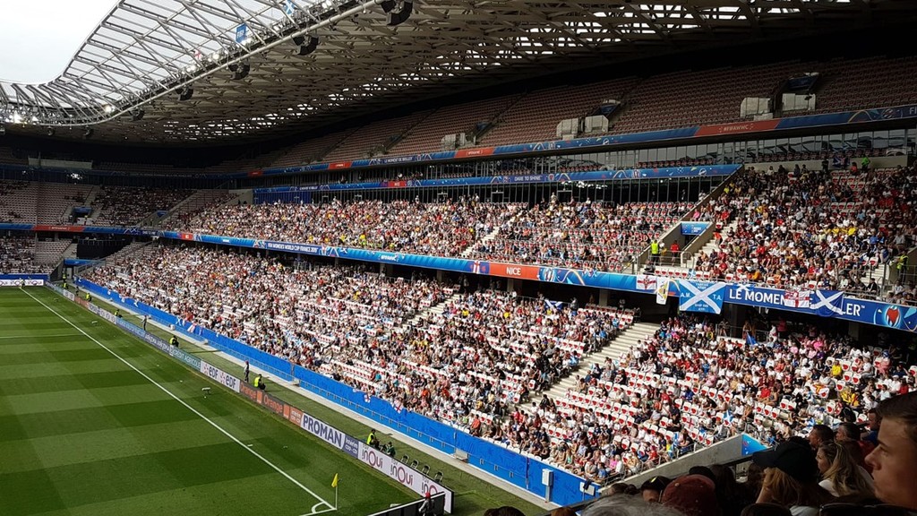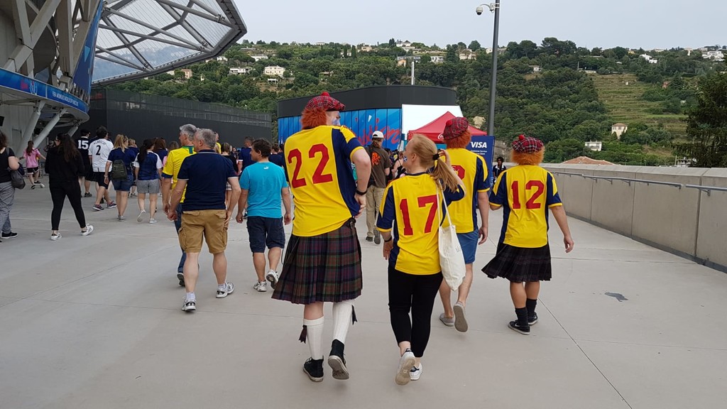 13.188 gli spettatori all'Allianz Riviera: tante famiglie con bambini. Bellissimo tifo con atmosfera da mondiali. Bandierine inglesi e scozzesi con tanti tifosi britannici che, si sa, amano la Costa Azzura. Scozzesi rigorosamente in kilt.