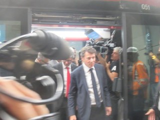 Christian Estrosi scende dal primo vagone che giunge in stazione: è sorridente, ma anche visibilmente commosso e teso.