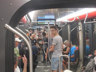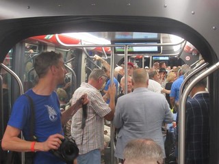 Poi la folla scende nel sottosuolo: per tutto il week end i tram sono gratuiti, il wi-fi e la tecnologia 4G assicurano il collegamento internet e la climatizzazione sconfigge , almeno nelle stazioni e durante il tragitto, la calura.