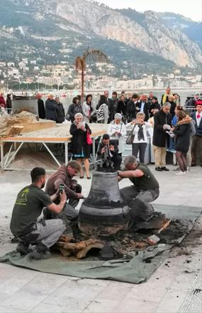 Ma l'evento straordinario e aggiungerei anche unico, è che la campana è stata proprio creata in riva al mare all'Esplanade des Sablettes.