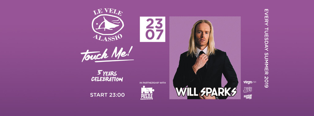 Le Vele Alassio presents Touch Me! - Special Guest DJ: Will Sparks / Puzzle Crew: Tony Antone + Danilo El Paris / Resident DJ: Francis Key / Voice: Mad Fiftyone