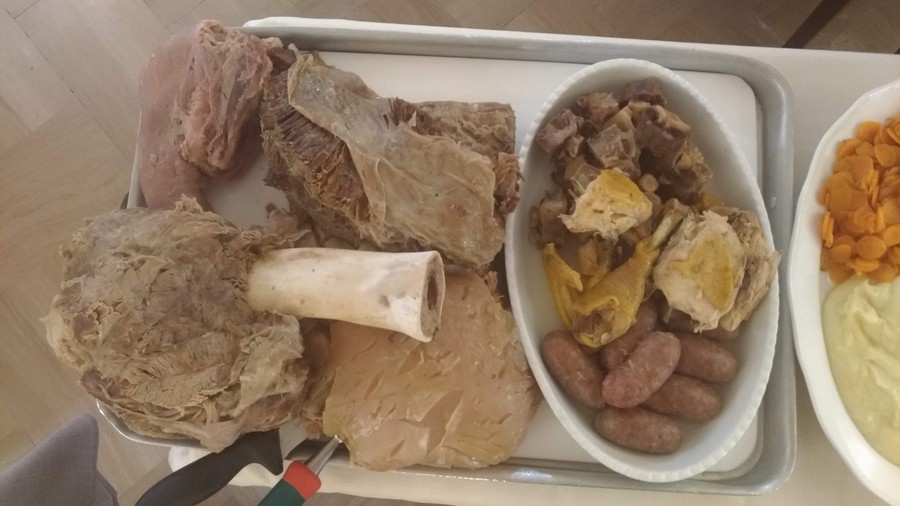 Indimenticabile il carrello del bollito. Sette pezzi (cotechino, gallina, coda, testina, muscolo, biancostato e lingua) accompagnati da sette salse. Un tripudio di carne e sapori che ogni cliente vuole immortalare con una foto.