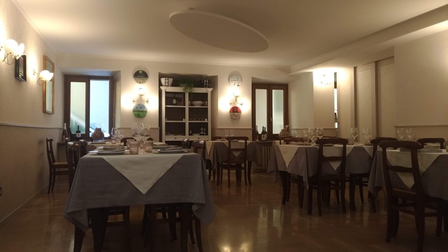 Sulla vetrata del ristorante c'è la scritta “Ristoratori per passione in Carrù”.