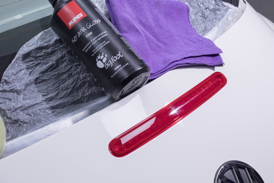 Quando il trasparente viene liberato da ogni sostanza esterna, il detailer asciuga l’auto e passa alla correzione dei difetti e alla lucidatura: per farlo si usano tamponi, abrasivi, lucidatrici rotorbitanti e rotative, specifiche per ogni singola parte dell’auto. Questa prima tranche di lavoro dura dai 2 ai 4 giorni e la garanzia di un intervento perfetto è data (anche) dall’utilizzo dei migliori strumenti presenti sul mercato: si tratta delle lucidatrici rotorbitali “BigFoot” della Rupes di Vermezzo, un prodotto che ha rivoluzionato la professione del detailer in tutto il mondo.