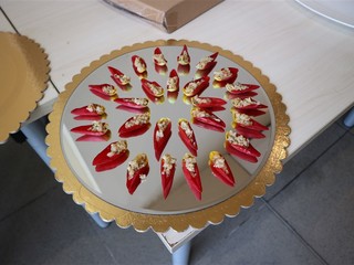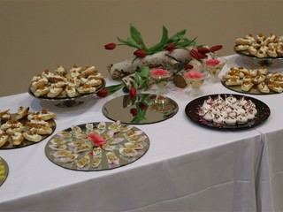Il buffet è stato realizzato dagli chef Roxana Rondan, Gianfranco Calidonna e Paola Chiolini con i fiori eduli di Ravera Bio e Hortives di Milano, con dessert della Biscotteria Gibelli di Vallecrosia (IM) ed i Grissini dolci e “Belinetti” alla cipolla egiziana della Panetteria Fratelli Lia di Camporosso (IM) e azienda Eredi DAMELE Antonio di Camporosso (IM).