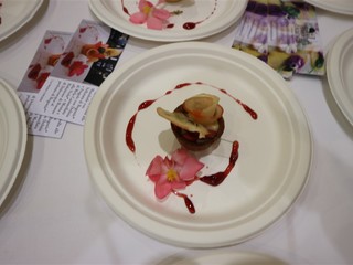 Dopo i finger food preparati dai Fiori di Hortives, si è proseguito con piatti deliziosi e originali realizzati dagli chef Roxana Rondan e Gianfranco Calidonna con i fiori forniti dalla azienda Ravera Bio di Albenga. Nell’ordine Sformatini di cardo con una fonduta profumata alla begonia e violette; Pasta con ragù leggero dell’orto, gelatina di limone e fiori di salvia; Pepite di pasta con crema di aji di gallina al peperoncino giallo e nasturzi seguiti da un dessert spettacolare a cura dello chef Paola Chiolini ristorante e catering Balena Bianca di Vallecrosia (IM) un dolcissimo vasetto di frolla alle mandorle con vellutata di begonia con mela caramellata alla menta e viola e riduzione di Rossese alla begonia. A seguire dessert vari e deliziosi come le dolcezze della Biscotteria Gibelli di Vallecrosia (IM) ed i Grissini dolci e “Belinetti” alla cipolla egiziana a cura di Panetteria Fratelli Lia di Camporosso (IM) e azienda Eredi DAMELE Antonio di Camporosso (IM). Il tutto accompagnato dagli ottimi vini della cantina Cuvage di Acqui Terme, in particolare l’Asti Secco e lo spumante dolce che ha ottenuto il riconoscimento di miglior spumante dolce al mondo. E per finire una deliziosa miscela di caffè Costadoro aromatizzato alla rosa.