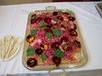 Il buffet è stato realizzato dagli chef Roxana Rondan, Gianfranco Calidonna e Paola Chiolini con i fiori eduli di Ravera Bio e Hortives di Milano, con dessert della Biscotteria Gibelli di Vallecrosia (IM) ed i Grissini dolci e “Belinetti” alla cipolla egiziana della Panetteria Fratelli Lia di Camporosso (IM) e azienda Eredi DAMELE Antonio di Camporosso (IM).