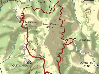 Mont Cima (878 m) é la più alta delle quattro montagne situate immediatamente a nord della città di Nizza, Mont Macaron, Mont Chauve de Tourrette e Mont Chauve d'Aspremont sono le altre importanti vette di questo settore in cui le forme arrotondate del rilievo e la bassa vegetazione, a seguito di numerosi incendi, costituiscono gli elementi più suggestivi del paesaggio.