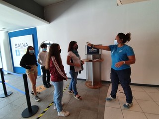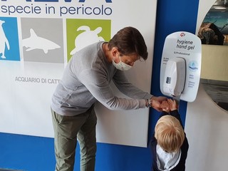 Disseminati in tutta l’area attrezzata ci sono i dispenser di gel disinfettante, soprattutto in biglietteria e di fronte alle vasche espositive, mentre vengono ripetute con frequenza delle pulizie straordinarie.