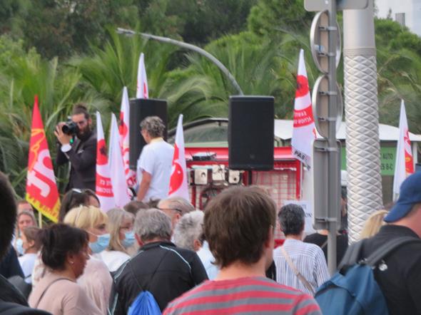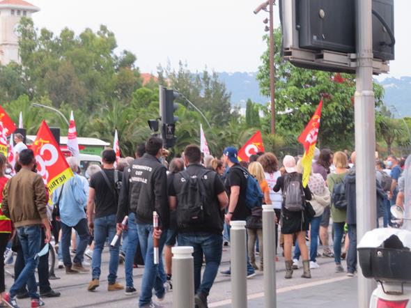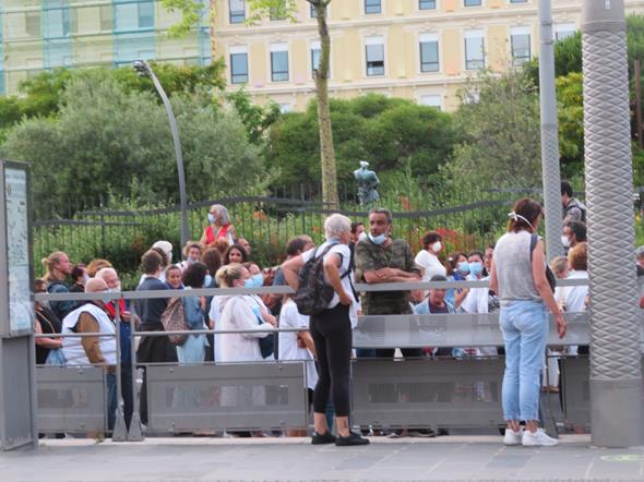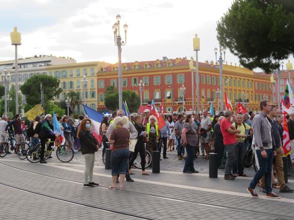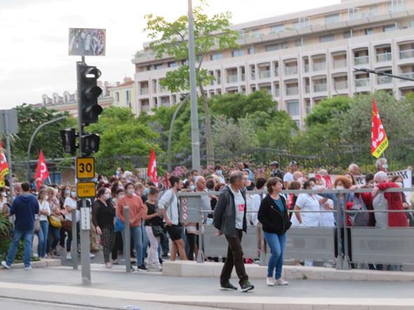 Così, per la prima volta dopo l’inizio dell’epidemia, il personale sanitario (i “camici bianchi” e quello che si è prodigato nell’assistenza a casa) si è trovato nel centro di Nizza a protestare.