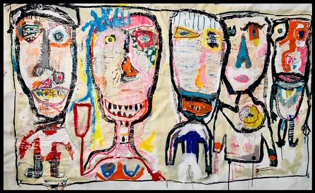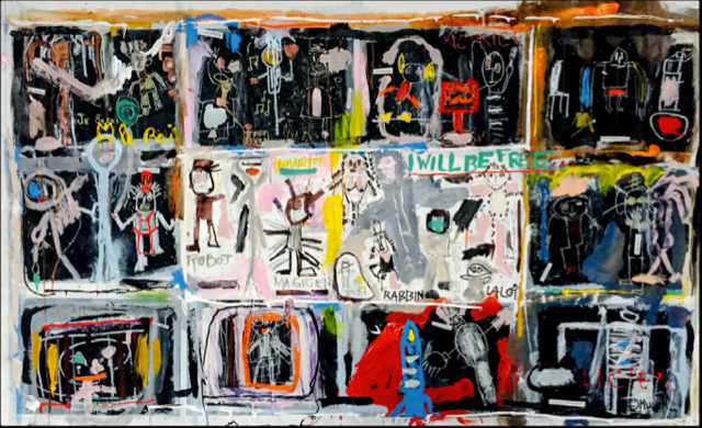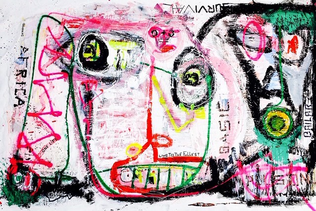 Grasso, acrilico, aerosol, carta incollata, pennarelli, inchiostro, prodotti del passato, tutti gli elementi utilizzati interagiscono. I suoi dipinti mostrano un legame tra forme e colori, un uso di colori audaci e un nero profondo che solleva molte domande. La sua visione e il suo tocco femminile ci offrono opere affascinanti, colorate ed energiche.