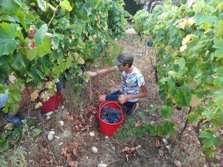 Si fatica, in allegria, lungo le colline che contornano Nizza: fino a stasera si vendemmiano le uve rosse che presto si trasformeranno in nobile e pregiato vino di Bellet.