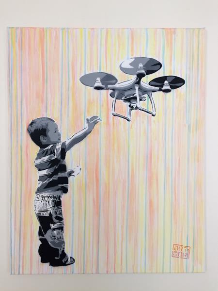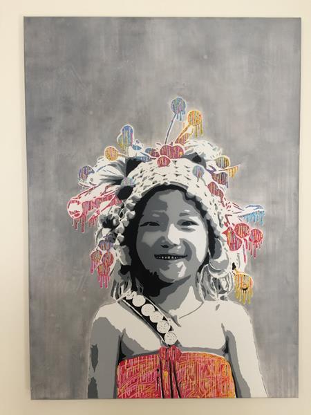 Crea dipinti attraverso un sistema di stampi posizionando diversi strati di colori come farebbe un serigrafo. Gli piace lavorare sul tema dell'infanzia che rappresenta con il suo simbolismo la fragilità, l'incuria, il futuro, così come sul tema delle personalità che ispirano la sua vita quotidiana come Agnès Varda, Romain Gary, Serge Gainsbourg.
