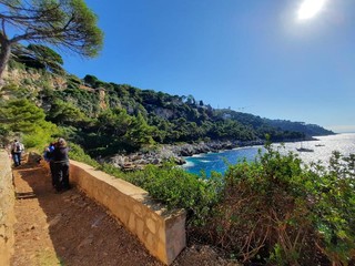 Il sentiero inizia con una magnifica vista sul porto di Saint-Jean-Cap-Ferrat, la spiaggia Cros dei Pin e la punta di Saint-Hospice. Dopo aver oltrepassato la punta Fontettes, scorgerete gli isolotti della punta Rompa Talon. A destra, sulle alture delle scogliere, si stagliano i villaggi pittoreschi di Eze e La Turbie, mentre più in basso il comune di Cap d’Ail si delinea lungo il litorale. L'ultimo capo che chiude l'orizzonte è l'Italia.
