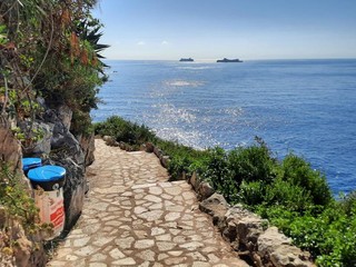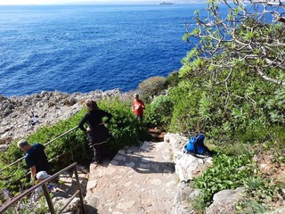 Proseguite la passeggiata fino alla punta: alla vostra destra scorgerete Cap-Martin, il Principato di Monaco e persino l’Italia. Infine, si arriva all’insenatura della Scaletta dove c’è la spiaggia della Paloma. Poi raggiungete il chemin de Saint-Hospice dopo aver salito una rampa di scale. Il giro si conclude camminando fino al Jardin de la Paix (dove c’è la fontana Coexist).