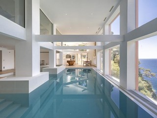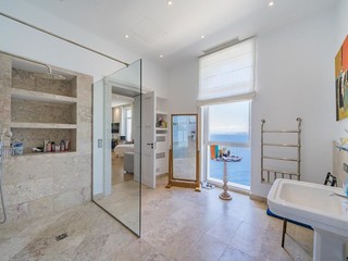 Su sei piani, con ascensore interno, è dotata di otto camere da letto, una straordinaria palestra, una piscina imperdibile, un centro benessere, cucine all’avanguardia e…una vista mozzafiato sulla Baia degli Angeli.