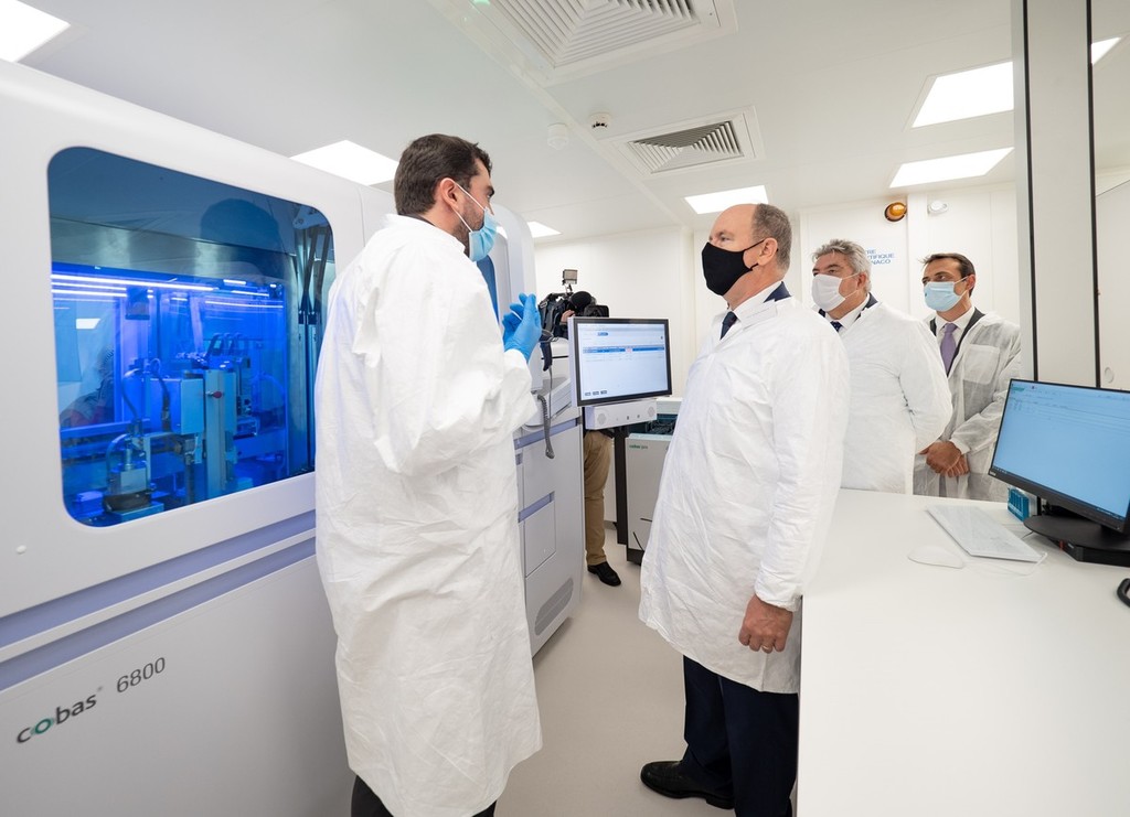Il Principe Sovrano, con il Ministro di Stato Pierre Dartout, i Consiglieri di Governo, Didier Gamerdinger e Patrice Cellario, il Delegato Interministeriale per la Transizione Digitale, Frédéric Genta, nonché col Presidente del Consiglio Nazionale, Stéphane Valéri, Vice Direttore Generale di Roche Diagnostics France, Carlos Justiniani, e del Presidente del CSM, Pr Patrick Rampal, ha osservato la nuova piattaforma analitica per la biologia molecolare ad alta produttività recentemente acquisita dal Principato nel contesto della crisi sanitaria, il Cobas 6800.