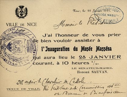 Tesoro del patrimonio nizzardo, il Museo Masséna è stato inaugurato in pompa magna il 28 gennaio 1921 alla presenza di tutte le personalità importanti dell'epoca.