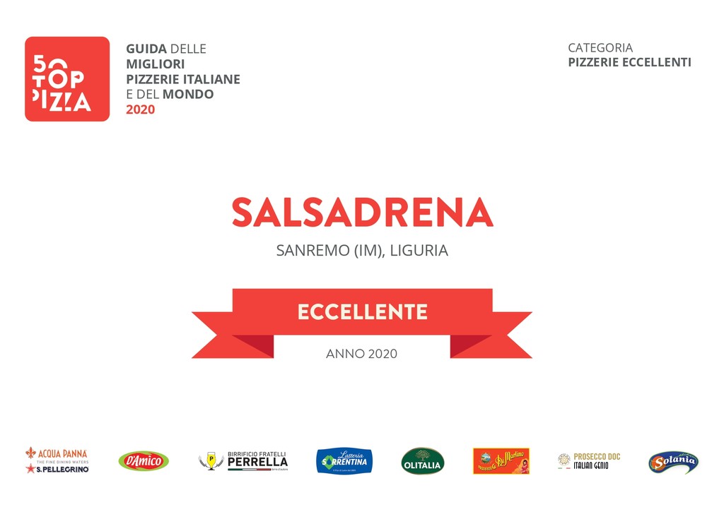 Il Ristorante Salsadrena a Sanremo, oltre ad offrire una splendida vista mare sulla spaziosa terrazza, lontana dal traffico cittadino, propone una cucina ricercata, ma al tempo stesso semplice e del territorio in un ambiente tranquillo e rilassante. Qui potrete spaziare dalle ottime pizze, fatte con lievito madre e farina macinata a pietra semintegrale, anche senza glutine, ai primi e secondi dai sapori tipici della tradizione mediterranea. Il Salsadrena è certificato AIC (Associazione italiana celiachia) e vanta più di 20 anni di esperienza nella ristorazione. Nel 2020 ha ricevuto un importante riconoscimento da parte di "50 Top Pizza", la più importante guida on line del settore, come pizzeria “eccellente” per la qualità delle farine e degli ingredienti usati.