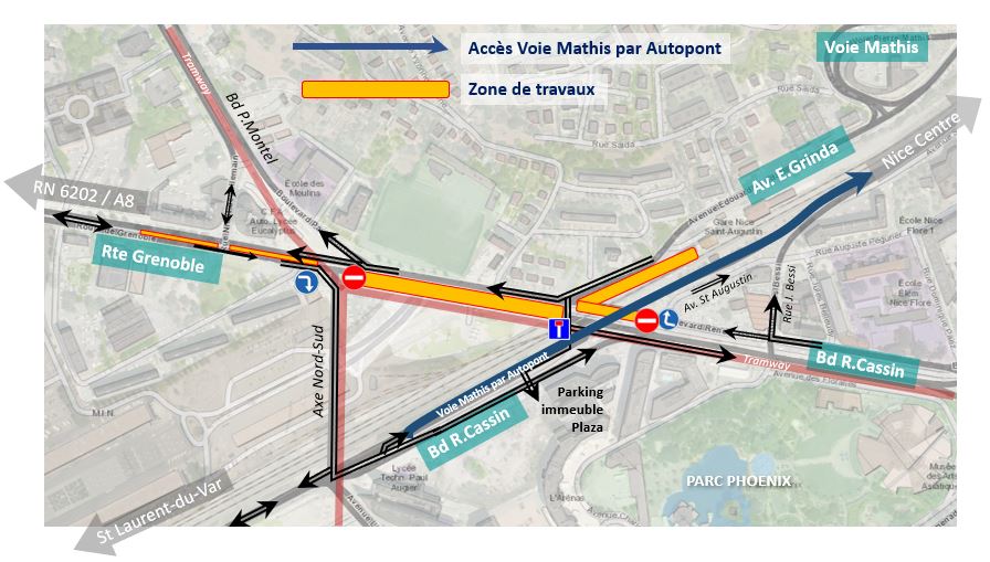 Conseguentemente si sono rese necessarie modificazioni alla rete stradale e in particolare sulla Route de Grenoble e su Boulevard René Cassin a partire da martedì 11 maggio 2021 per una durata prevista di 18 mesi.