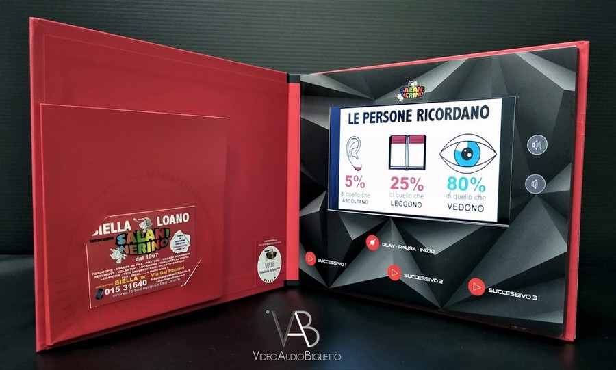 “Il futuro della comunicazione pubblicitaria è adesso” racconta Fabrizio. “Fino a qualche anno fa, si pensava che la tecnologia audio-video avrebbe sostituito completamente l'informazione cartacea. In questi ultimi anni vediamo invece campagne pubblicitarie internazionali che utilizzano mezzi cartacei per la comunicazione del medio e lungo periodo e l’informazione digitale per l'immediato. Questo perché siamo spesso invasi da centinaia di informazioni video di qualsiasi tipologia e la nostra memoria, unita alla nostra concentrazione, si focalizza su ricordi brevi, immediati e che si disperdono in poche ore. Per questo ho deciso di realizzare questa tipologia di prodotti: i filmati Audio-Video sono tecnologici, affascinanti e attirano l’attenzione, il loro inserimento all’interno di un supporto cartaceo permette al prodotto di essere tangibile e utilizzabile con semplicità, in qualsiasi momento, per un periodo molto lungo”.