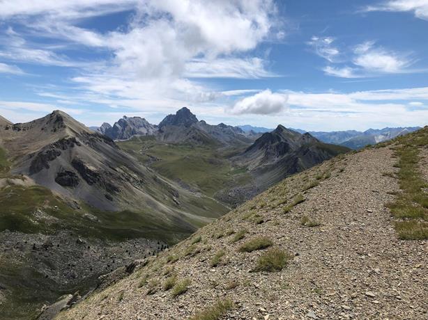 Dal forte Virajsse,il lontananza il mitico Monte Tete de Moîse,Oronaye per gli Italiani