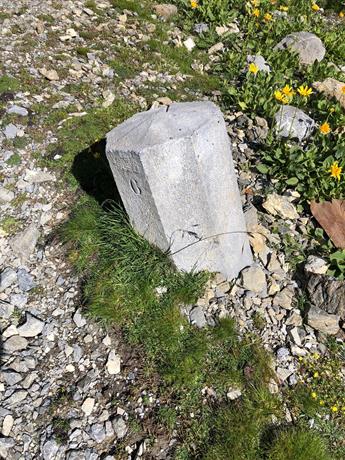 Curioso cippo/ paracarro lungo la strada militare che da Saint Ours porta alla Tete de Virajsse,con un percorso di 10 km e 3.5 ore di salita( 1000 metri di dislivello)