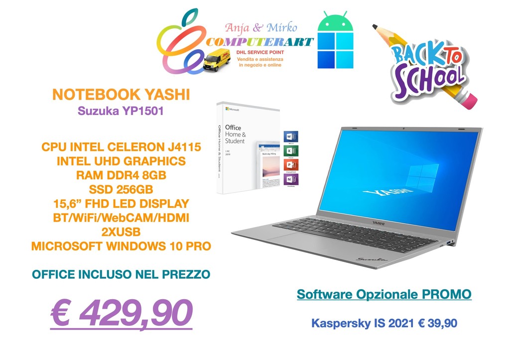 Notebook Yashi con CPU INTEL/SSD/8GB di RAM/Schermo FULL HD a soli 429,90€