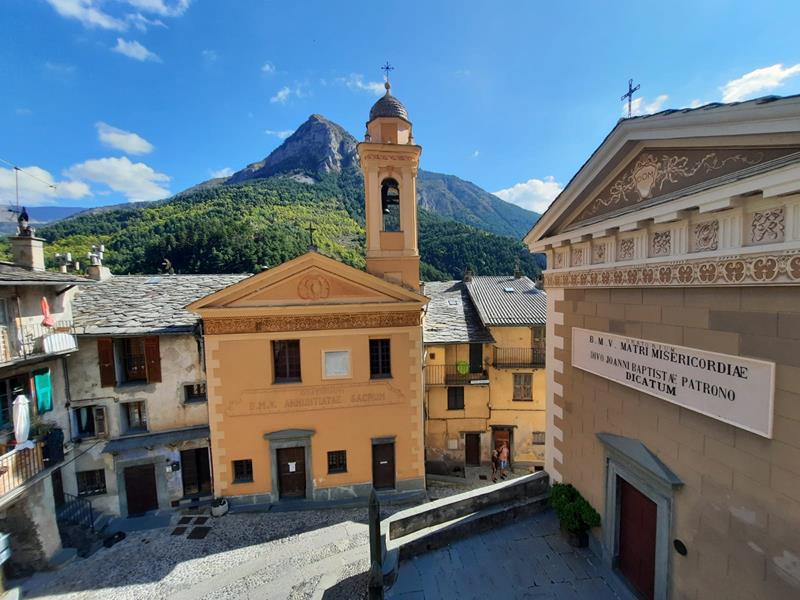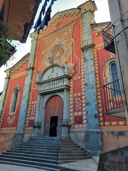 Più avanti, piazza Ponte ospita il vecchio palazzo rinascimentale dei Lascaris e belle case gotiche. La Collegiata di Nostra Signora dell’Assunzione è l’edificio più emblematico dello stile eclettico; qui un organo storico, degli organari Serrassi, è protagonista di un festival internazionale. Lungo tutto il percorso, le cappelle private presentano affreschi di Jean Baleison, datati 1476, con ornamenti barocchi e campanili a bulbo rivestiti di variopinte piastrelle smaltate.